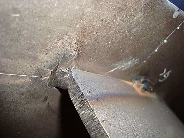 Findings: Joint Tubesheet to Shell in Section Generator/Condenser specified to be CJP Welded, however a weld preparation with no root gap (Joint completely closed) was done, Not in accordance with specified Welding Symbol, therefore a weld without complete joint penetration was obtained.