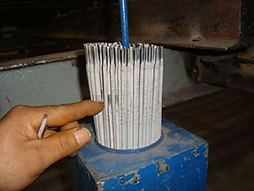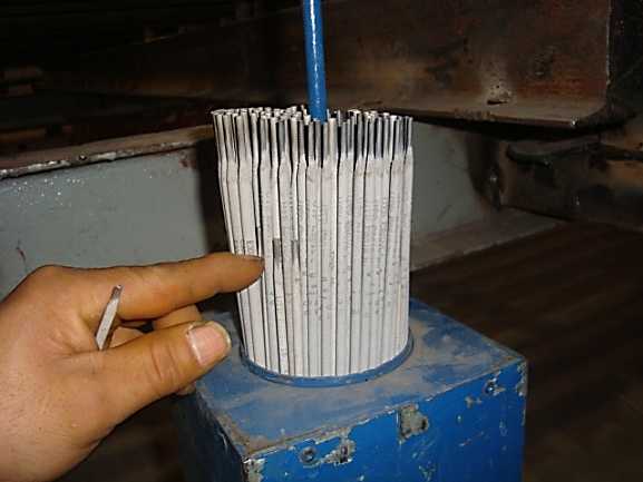 Findings:Fit-Up of Alignment Straps(P8 to P8 Stainless Steel Materials), Used Electrode E-308, right to Approved WPS, however in the Portable Oven being used by tack welder to keep the Austenitic E-308 electrodes(E-308 is Not a Low Hydrogen Electrode) were found mixed electrodes E308, E309 as well low Hydrogen Electrodes E8018 B2 and E7018 with the serious risk to take a Carbon Steel/Low Hydrogen Electrode and tack weld wrongly on the stainless steel material.