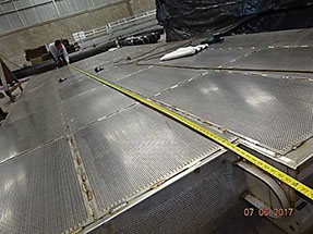 Re-Inspection: NCR-20437-NR-96 has been open on this Deviation and the disposition from Customer has been to correct the referenced dimensión on all Baffles in accordance with Project Tolerances. Vendor has worked to correct the referenced Critical Dimension on all Completed Baffles, as well accordingly Fraza Team has re-inspected on them with aceptable Results. See Photos on referenced Dimensional Deviation.