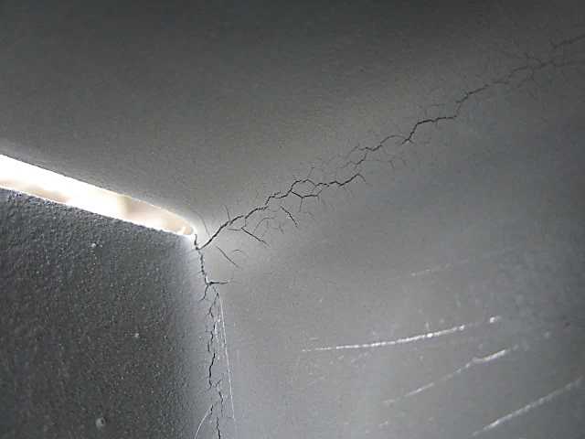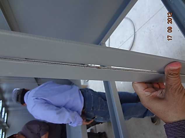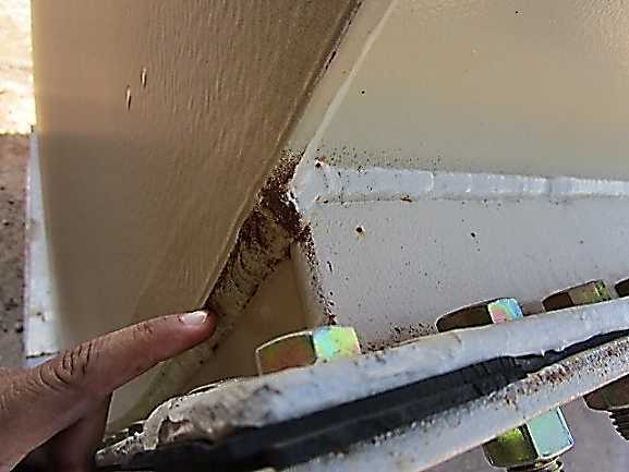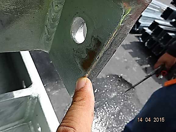 Findings: Approximately, ten areas showing Mudcracking Observed mainly on flange edges of beams under floor plates, areas between webs and flanges of beams and other ones on external gussets and external side of beam near lifting lugs.