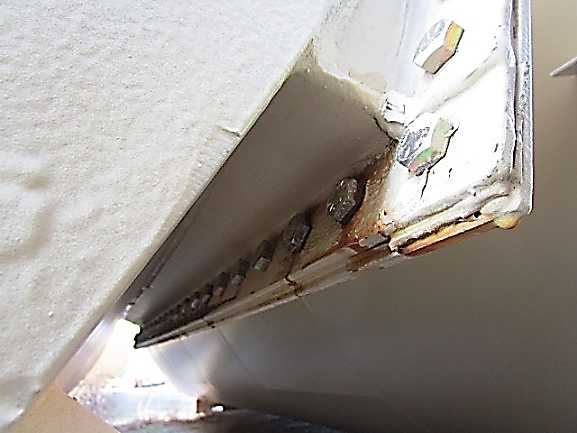 Findings: Rusting bleeding out from stitch welds of external Reinforcing Rings of Stack Top Section.