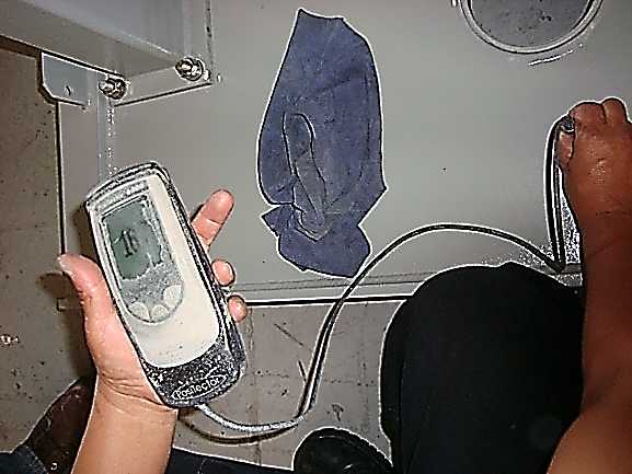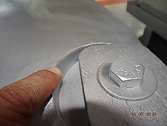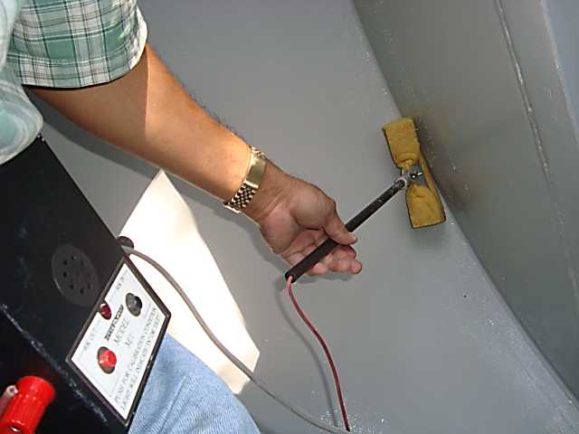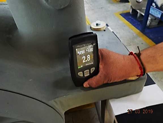 Re-Inspection: All Voids detected have been repaired by paint re-touch and after permitted drying time in accordance with the Paint Manufacturer Data Sheet all of them have been Holiday Tested again with acceptable results. See Photo as Illustration on Holiday Test.