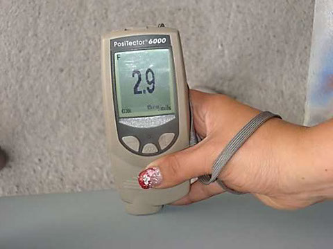 Findings: Paint defects such as pinholes, áreas with no full paint coverage, lumps, runs, sags and blisters.