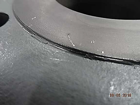Re-Inspection: After Rework, Flange Facing Finish has been measured and found at 234 Micro Inches as Average Roughness, as well the Height of Raised Face measured and found at 0.049”, both Dimensions Acceptable to ASME B16.5 Standard. Also, Hydrostatic Test has been conducted again on referenced Turbine Flow Metter with aceptable results. See Photos as Illustration on Described issue as originally found.