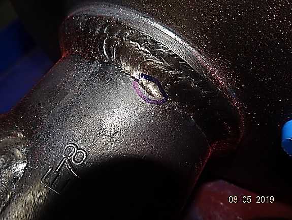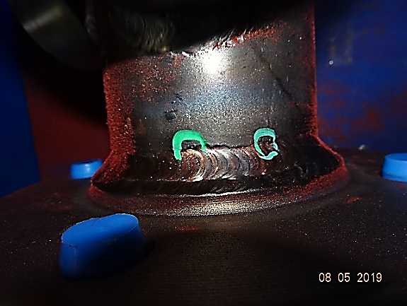 Re-Inspection: All defective áreas were repaired by welding/grinding and examined again by MT with aceptable results. See Photos on typical issues as Described.